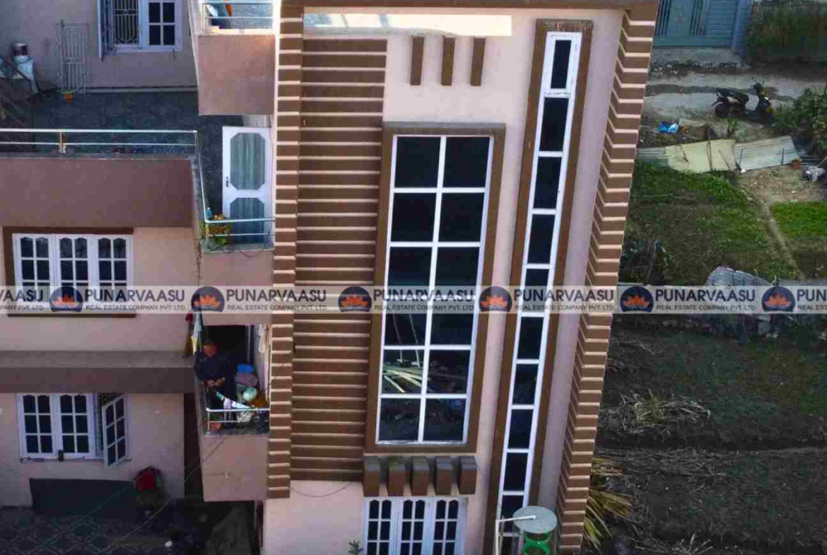 This residential house for sale in Imadol, Sital Height is a spacious 2.5-storeyed home built on 4 aana land with 13 feet road access, making it ideal for families looking for a comfortable living space in a developing area. The property layout is designed for family comfort with separate floors for living and bedrooms.